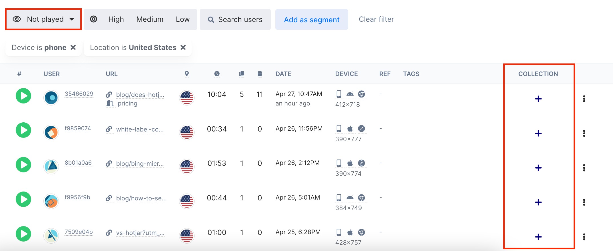 Filtering is an essential technique that allows you to quickly find relevant session recordings based on specific criteria. For example, Howuku provides a scoring system that categorizes visitor recordings as high, medium, or low scoring based on the number of pages visited and the length of the session.